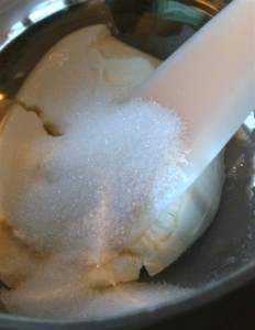 I en annen bolle blandes ost og sukker sammen til mykt og luftig.