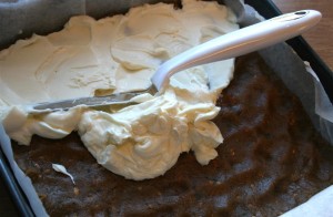 deretter spres all ostekrem over, og fordeles helt ut til kantene.