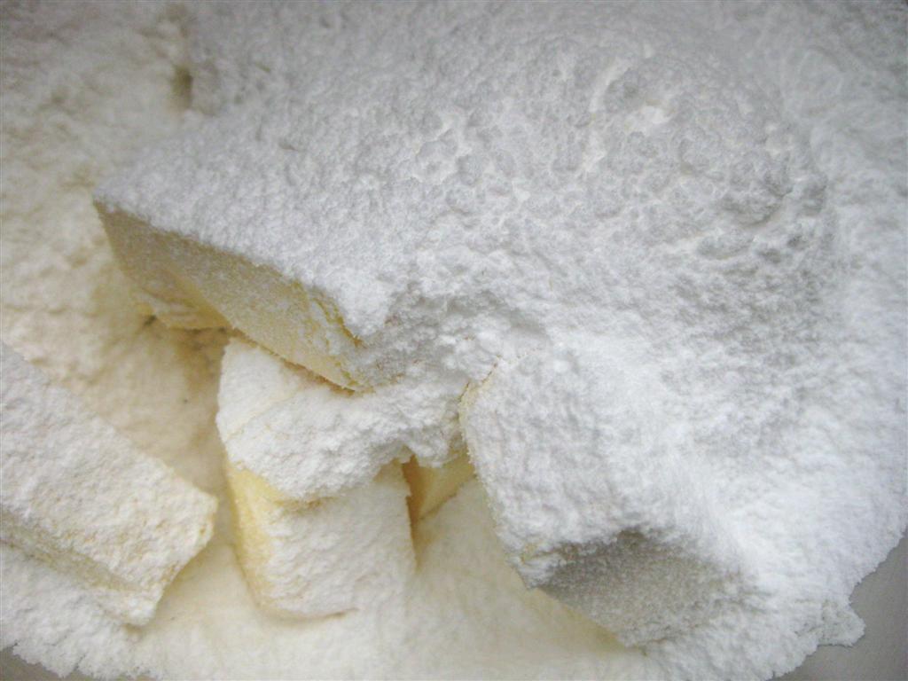Krem sammen smør og sukker til en lys og luftig masse,på middels hastighet, det tar noen minuttter. Sikt sammen alt det tørre i en bolle for seg.