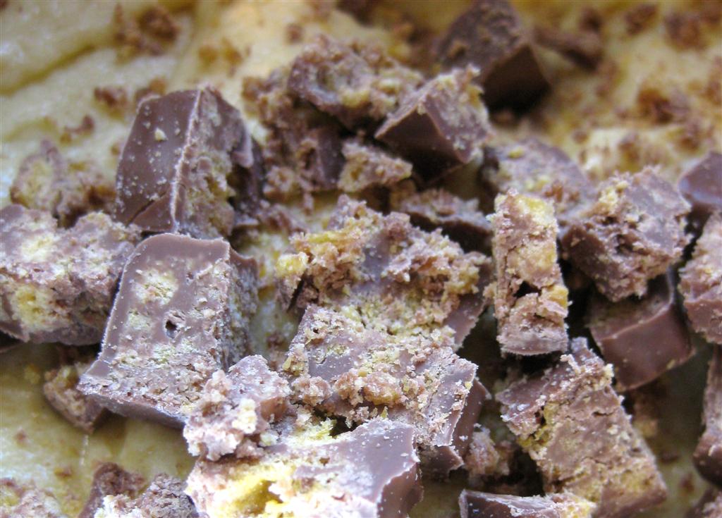 Hakk opp smash i passe biter og bland inn i deigen men en slikkepot.