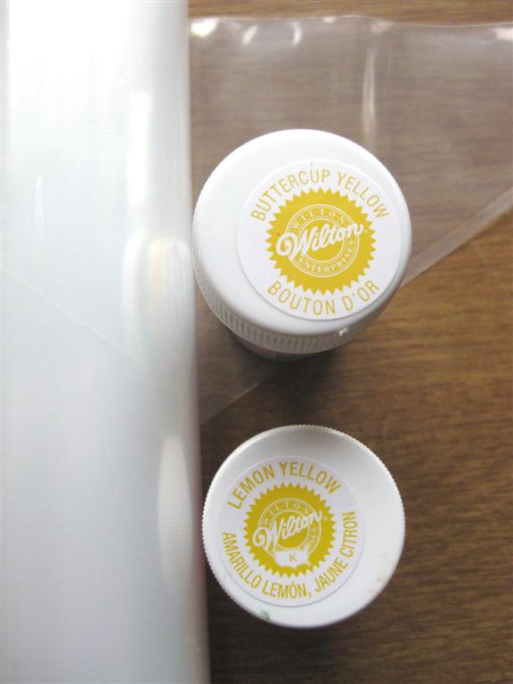 Da kan du sette til farge om du ønsker. Jeg har kjøpt kjøpt farger og sprøyteposer på rull, på ebay.com. Tomsann Cake Art Supplies