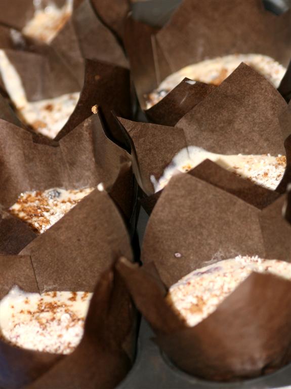 Smør et muffinsbrett eller bruk papirformer i brettet. Har du ikke brett vil de ese utover og miste høyde.