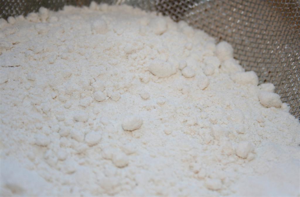 Sikt sammen mel og potetmel. Bruker du vaniljesukker, sikt det inn sammen med melet.