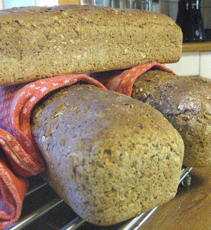Steketid ca 35 minutter. Jeg pleier å ta brødene ut av formene etter 30 mitutters steketid og steke de ytterligere i 5 minutter stående rett på stekeplaten. Banker du på undersiden av brødet skal det høres hult ut når det er gjennomstekt.