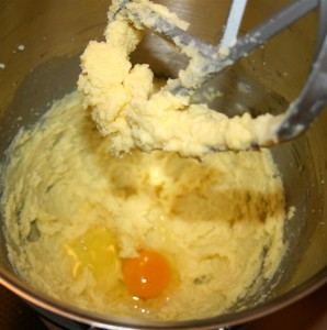 Let the machine run at medium speed and remember to scrape the sides of the bowl, so everything is mixed well together.