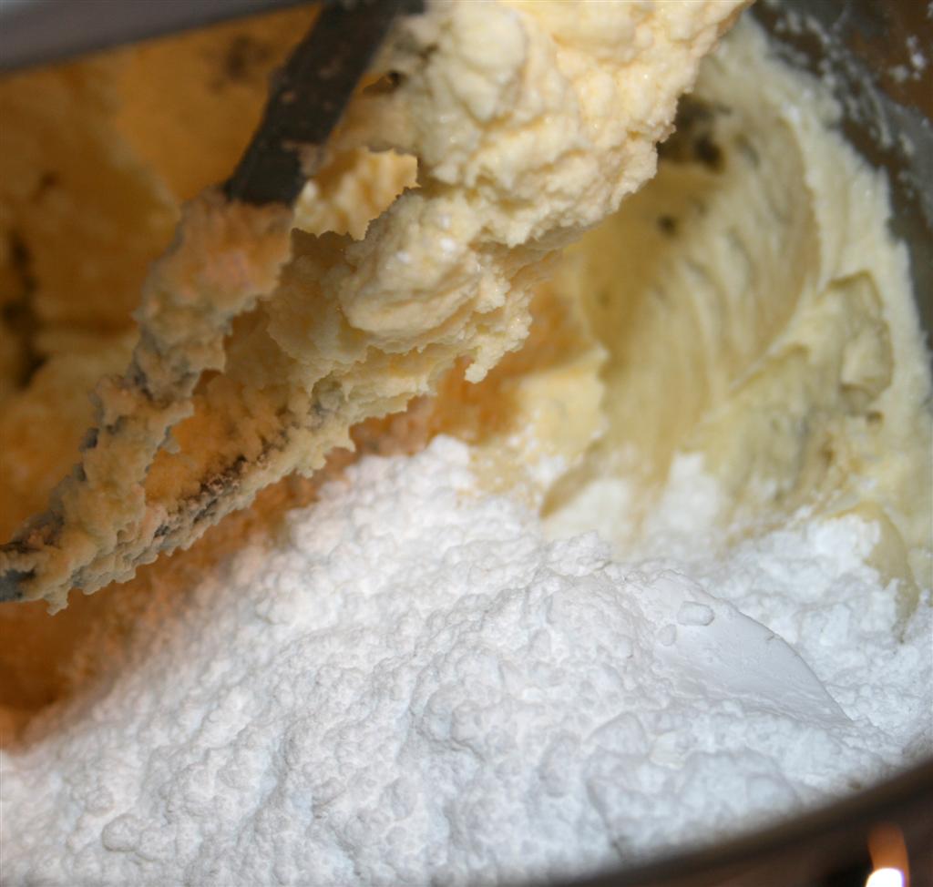 When the butter is soft and creamy, it’s time to add the eggs. Mix on low speed and add one egg at a time and mix well between each addition.