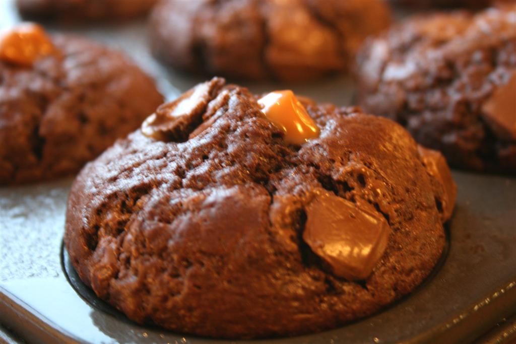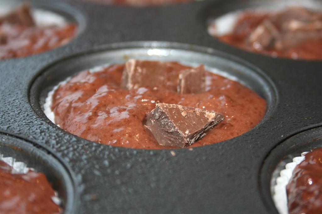 Today I have my usual chocolate hunger, so I’m mixing together a batch double chocolate muffins.